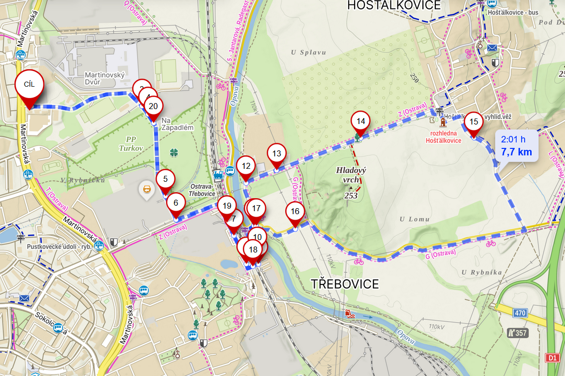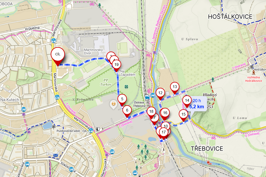 8 km – nejnáročnější, s převýšením, odkaz trasa 8 km